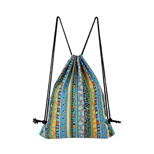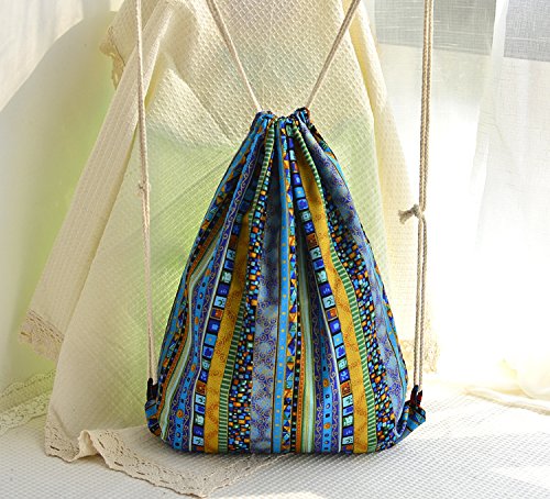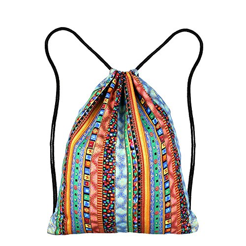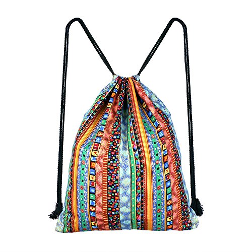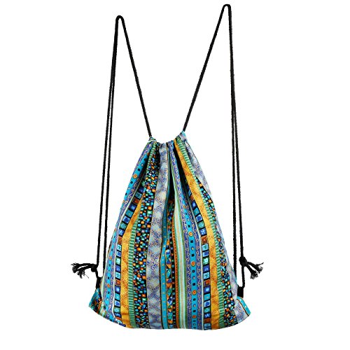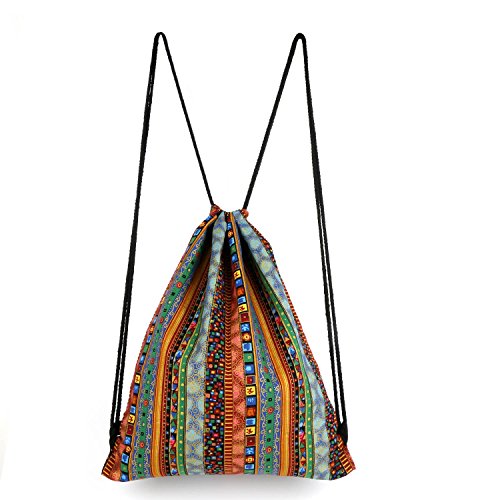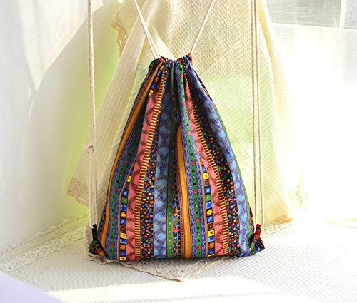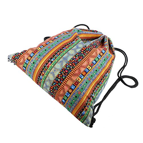 Cotton Canvas Drawstring Backpack Lightweight Bohemia Hippie Bucket Bag Outdoor Ethnic Shopping...