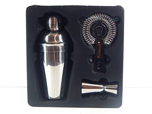 -. Brand : Silver one international -. Color : Stainless Steel -. EAN : 0848496034044 -. Feature : 3 essential bar tools / 1 Stainless steel shaker cup, 1 jigger and 1 strainer / Perfect for mixing and measuring signature cocktails / Ideal for your home bar or professional use / Made from stainless steel -. Model : SYNCHKG091608 -. MPN : COMINHKG091608 -. PackageQuantity : 1 -. PartNumber : COMINHKG091608 -. ProductGroup : Furniture -. ProductTypeName : HOME_FURNITURE_AND_DECOR -. Title : 3 Piece Stainless Steel Cocktail Shaker Set -. UPC : 848496034044
