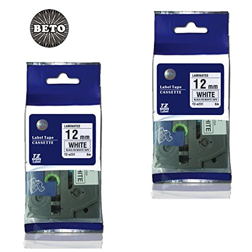 -. Title : Pack Of 2 Beto Replacment TZ231 TZe231 Black On White Tape For Brother P Touch Labeler