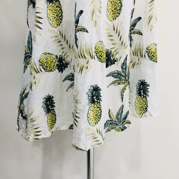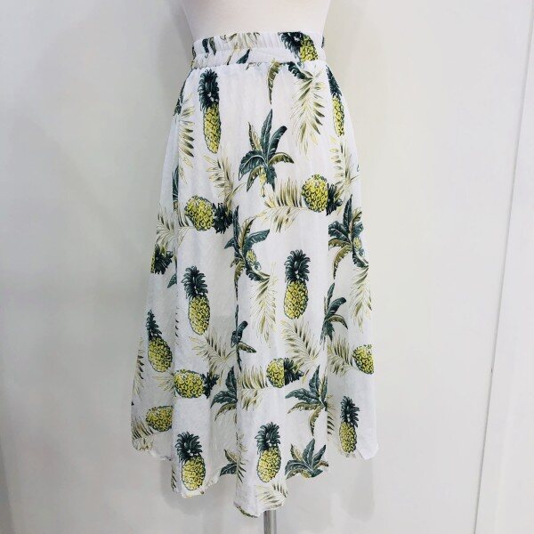파인애플 패턴의 면 스커트입니다. 안감처리가 되어있지만 제품 자체가 굉장히 가볍게 나왔기 때문에 시원하게 착용이 가능합니다. (총장: 약 76cm)** 저희 멜로디가든매장은 상품이 매장에서 같이 판매가 이루어지기때문에 매장에서 선판매시 배송으로 받아보시는 기간이 5~7일 소요가 됩니다. 이점 양해부탁드립니다^^ 감사합니다♡**