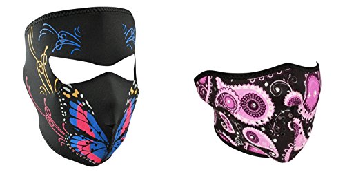 -. Feature : This Product is a 'Bundle' of 2 Neoprene Face Mask Items identified as a 'Butterfly Mouth' and a 'Purple Paisley' / The First Facemask Item is the ZanHeadgear 'Butterfly Mouth' Full Face Neoprene Face Masks / The Second Facemask Item is the ZanHeadgear 'Purple Paisley', Highway Honey, Half Face Neoprene Face Mask with Rhinestones / Face Masks / Ski Mask Items are made of Durable, Naturally Warm & Water Resistant Neoprene Face Mask Material / Face Mask Sizes are adjustable, by up to 2 inches, using the Hook & Loop closure, located at the back of the head