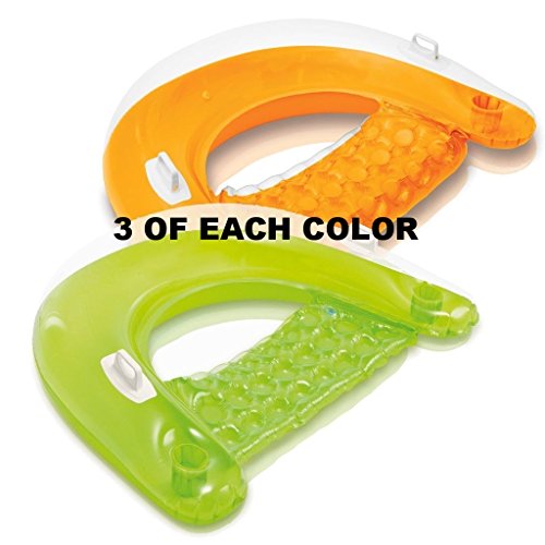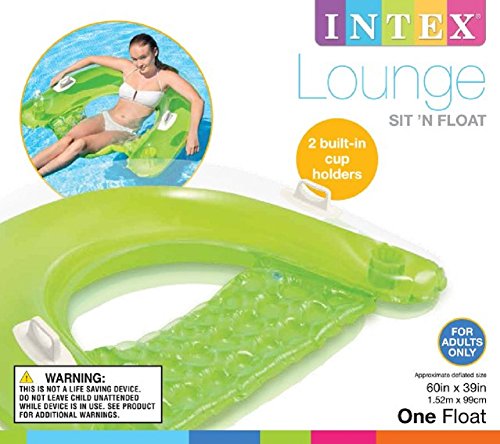 Studio : Intex Publisher : Intex Binding : Kitchen Product Description Intex Sit 'N Float Inflatable Lounges Lime Green Orange Gift Set Bundle - 6 Pack, 60" X 39", is AWESOME! Set Includes 3 Lime Green Float 3 Orange Float, Each with Repair Patches! Enjoy the water this summer on the INTEX Sit 'n Float Inflatable Tubes. These unique loungers act more like chairs than rafts. Featuring two handles, two cup holder and a full back rest, the INTEX Sit 'n Float is perfect for a social day on the water! For Ages 8 and up - Fun for the whole family! - Makes a Great Gift! 0
