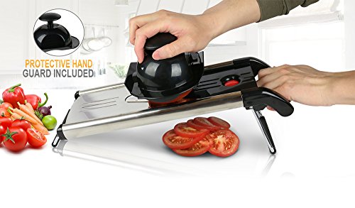 VERSATILE AND CONVENIENT VEGETABLE CUTTER - Restaurant quality slices, quickly prepare gluten-free zucchini lasagna, sweet potato, and beet chips or julienne crispy French fries. Included hand guard ensures you will never have to place your fingers near the blade