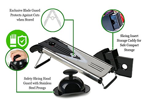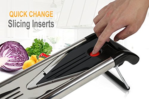 Premium Mandoline Fruit & Vegetable Cutter for Home and Business-Cheese Grater, Potato Slicer | Vegetable Chopper: Includes 5 Inserts (Black), Blade Guard, Finger Guard | Free Recipe E-Books