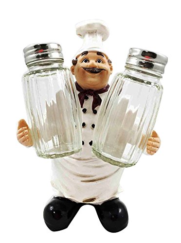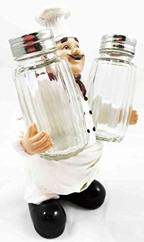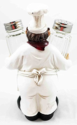 Fat Bistro Chef Hugging Seasons and Spice Salt Pepper Shaker Holder Figurine Stand