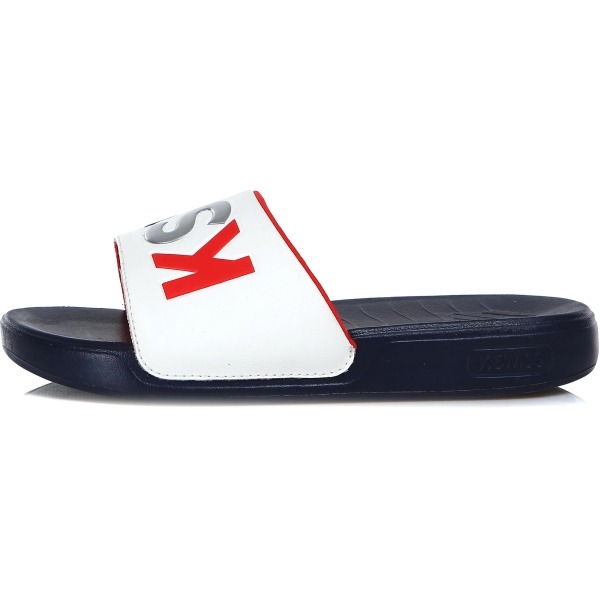 통통튀는 컬러의 글자그래픽을 넣은 갑피디자인이 특징인 아동용 슬라이드 샌들. 갑피의 폼을 넣어 착화감이 우수함.