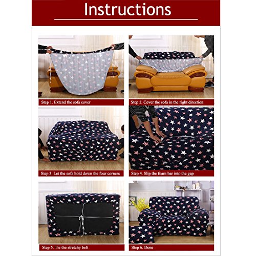 -. Feature : Sofa Slipcover Material: Polyester & Spandex Fabric / 1seat back length:35 to 55 Inches Chair; 2seats: 56 to 74 Inches Loveseat; 3seats: 74 to 90 Inches Sofa / If your sofa is L type combined by 2 parts separately,you need to order 2pcs cover for it / Protect Your Furniture / Couch From Stains, Pet Hair or Damage; Installation steps showed by seeing picture / Easy to set up and pick up; Machine Wash Cold, Do Not Beach, Tumble Dry Low,Not Ironing