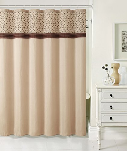 Luxury Home 13 Piece Madeline Faux Silk Shower Curtain Set, Chocolate/Taupe