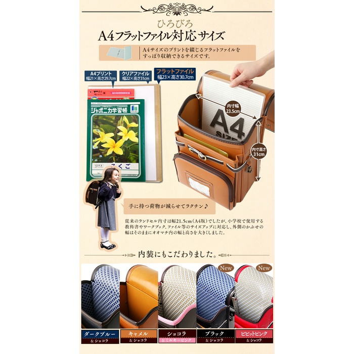 란도셀 클라리노 A4클리어 파일A4플랫 파일 대응 일본제 국산 암청색×초콜릿 초콜릿×캬멜 캬멜×초콜릿 초콜릿×핑크 카 더 마란도 셀 우커