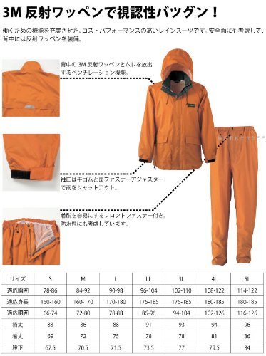 가슴둘레:160cm 견폭:66cm 소매 길이:63.2cm #장:96cm 옷 길이:86cm 웨스트:116~126cm 거폭:28cm 밑아래:84cm 표땅:나일론100%(PVC라미네이트) 안감:폴리에스텔100%(쟈켓팬츠총 뒤 메쉬)