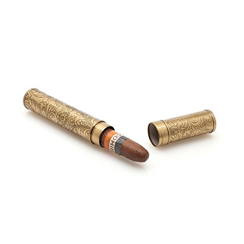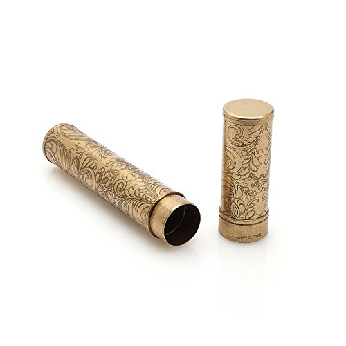 Pure Copper Floral Carving Cigar Holder 100%Airtight in Bronzy with Dust Bag