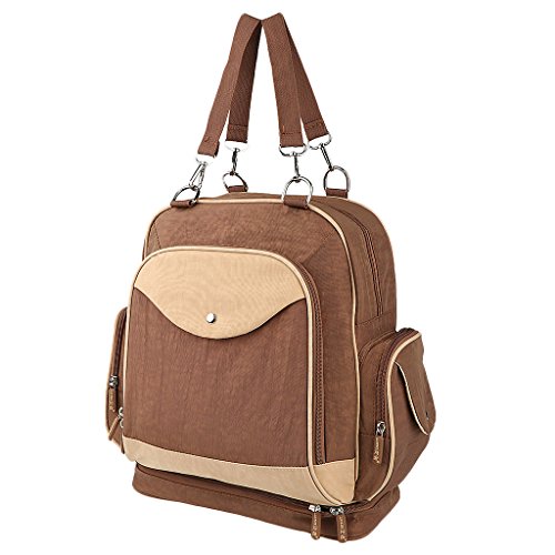 Description: - Material: Nylon - Top zipper closure. - Total pocket:5 pockets(A main bag, baby clothing can be putted. a front pocket,baby food and milk bottle can be putted. two side pockets, charging wire and tissue can be putted, and a bottom extension pocket) - The back of the bag is provided with a net surface, and the package can be sheathed on the pull rod box - Adjustable padded shoulder straps.carry the bag on Single shoulder,Shouders ,and Diagonal pan. - Water resistant,stylish,a large capacity space,excellent quality. - Occusion:is very suitable for shopping, traveling when you with baby. - Weight: 0.85kg Size Chart: Bag Length: 32cm/12.60in