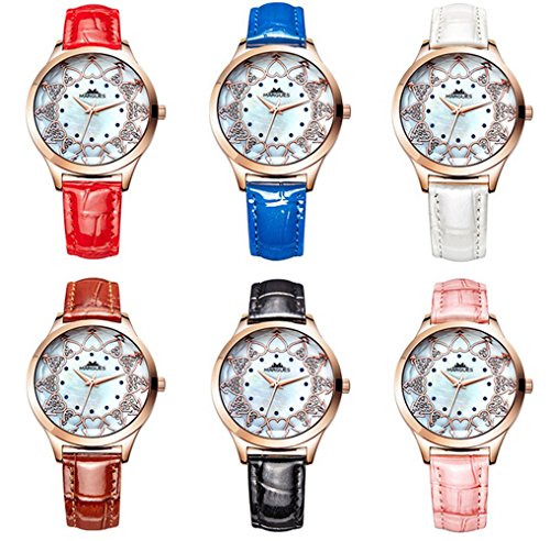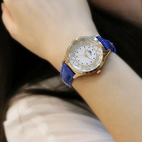 -. Feature : ケース:36mm、ケース厚み:8mm、バンド幅:16mm バンド長さ:240mm調節可、重量:約34g / バンドは本革、牛革、耐久性・耐磨耗性に優れています。 / ムーブメント:クォーツ(電池式) / 日常生活用防水:30m程度 / ケース裏のハートにキラキラしているダイヤモンドつき、非常にかわいくて綺麗です。
