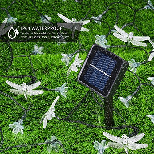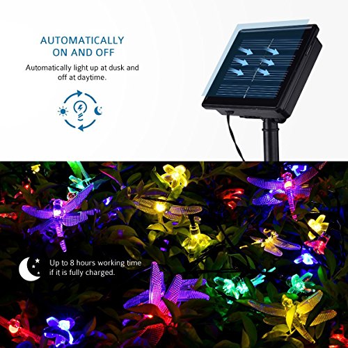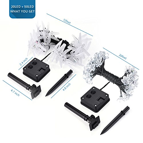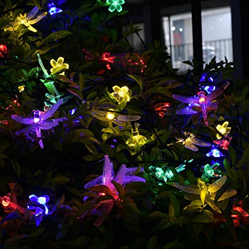 - 🎄【MAKES YOUR GARDEN STAND OUT】Solar led string lights with 50 LED 20ft Peach Blossoms and 20 LED 12ft Dragonfly shaped cover, nice and beautiful, high bright multi-color at night.