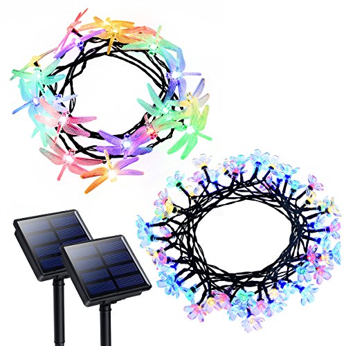 Solar String Lights, Litom 50 LED Peach Blossom and 20 LED Dragonfly Shape with 8 Working Modes, Multi-color Solar Lights Outdoor, Waterproof Decorative Light for Patio, Lawn, Wedding, Christmas Party
