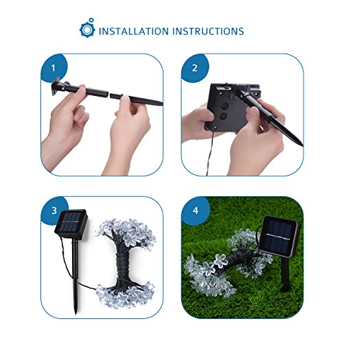 - 🎄【EASY TO INSTALL & OPERATE】No wire and battery required. The string is perfect for wrapping around a tree or wherever you like to light your gardens, patio, lawn, porch, gate, yard, etc.