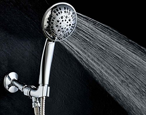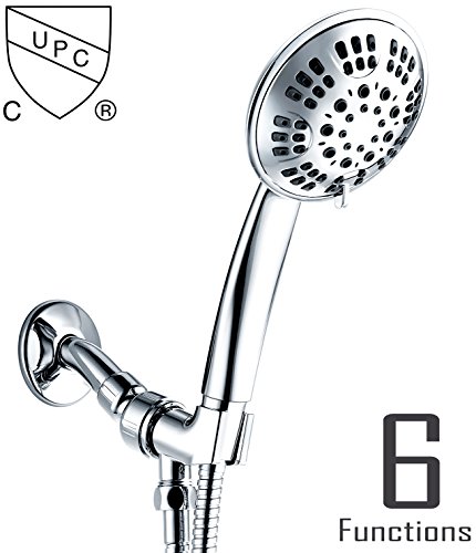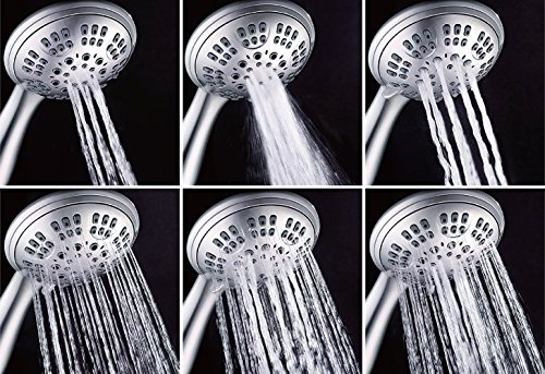 PREMIUM QUALITY AND 6 SPRAY SETTINGS: Wide Full Coverage and Anti-Leak modern Design. Lasting Finish Resists corrosion & wear. Can be used as Overhead or Handheld shower. Ergonomic Grip Handle. One finger control Multi-Power Dial. Water Saving Trickle Dial reduce water flow and save. 6 sprays: power spray, power massage, power spray+massage, Power Aerated, Power spay+Aerated, Water saving trickle( save water and keep your shower warm while you shave or shampoo) .