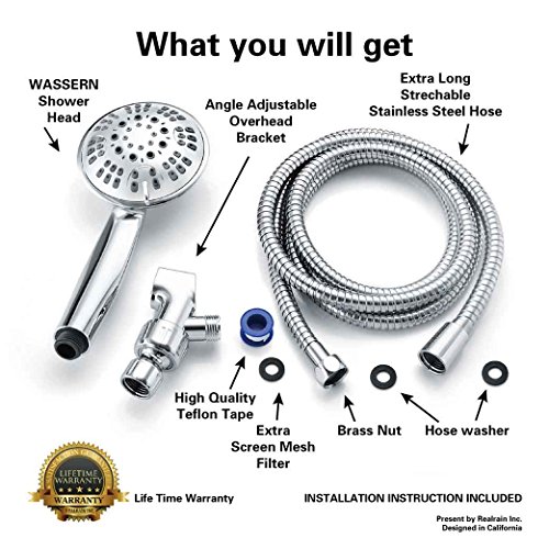 WHAT YOU GET: stunning gift box, Handheld Shower • Shower Hose • Overhead Bracket • Free Teflon Tape, Additional Water Filter • flow restrictor that is easy to install and remove. Installation Manual and Warranty. BEST LIFETIME WARRANTY: Hassle-Free US Limited Lifetime Warranty with LIVE customer service representatives in US.