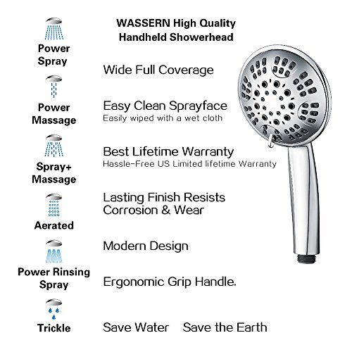 SAVING WATER SAVING MONEY: Saving $110/year or 35% water with our New Massage Spray, Ecoswitch Pause and water saving trickle dial.The Wassern Showerhead will pay for itself in less than 3 month. INSTALL in minutes on any standard shower arm. Easy Tool-Free connection.