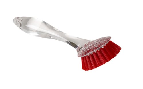 Product DescriptionLong Handled Vegetable Brush Plastic, long handled vegetable or dish scrub brush. Nylon bristles with handy hang hook. Comes in assorted colors.0