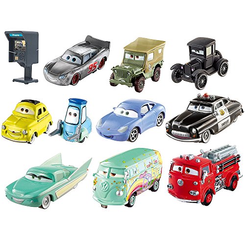 -. Feature : Includes 10 1:55 scaled die-cast vehicles. / Set includes: Primer Lightning McQueen with telephone, Sheriff, Flo, Lizzie, Sarge, Luigi, Guido, Sally, Fillmore, and Red. / This is the first release of Primer McQueen.