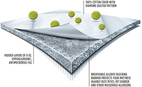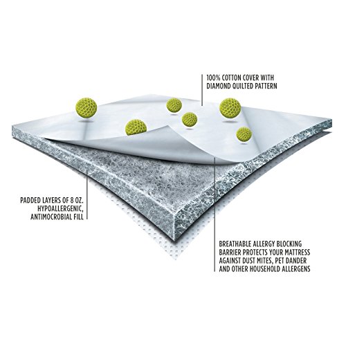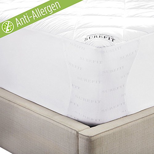 -. Brand : Surefit -. Feature : 300TC thread-quilted cotton top fabric / Hypoallergenic, anti-microbial polyester fiber fill / 8 oz. of fill per sq. m / Available in choice of size / FORMFIT™ technology fits mattresses up to 18 in. thick -. Label : Sure Fit Inc -. Manufacturer : Sure Fit Inc -. MPN : 45905 -. PackageQuantity : 1 -. PartNumber : 45905 -. ProductGroup : Home -. ProductTypeName : HOME_BED_AND_BATH -. Publisher : Sure Fit Inc -. Studio : Sure Fit Inc -. Title : Sure Fit Anti-Allergen Mattress Pad