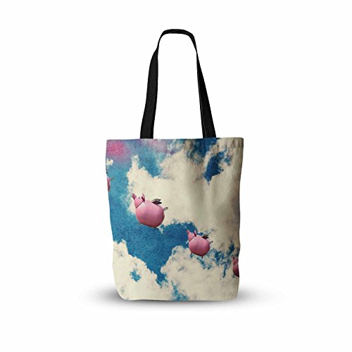 KESS InHouse Robin Dickinson "When Pigs Fly" Pink Blue Digital Everything Tote Bag, 13" x 13", Multicolor