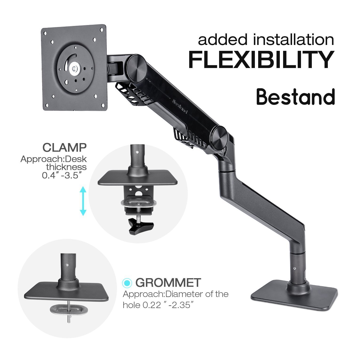 The maximum arm length of the display bracket is 23.5 ", and the height from the desktop is 18.5" maximum.