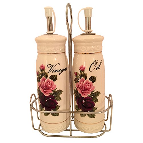 -. Title : D'Lusso Rose 2 Pc Oil & Vinegar Cruet with Metal Caddy