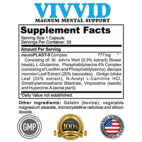 BOOST MEMORY, FOCUS, & CONCENTRATION: BELDT Labs' best memory supplement is here! VIVVID is a focus and brain booster to help you improve memory & stay focused throughout the day. With St. Johns Wort, L-Glutamine, Phosphatidylserine (Lecithin and Phosphatidylserine), Bacopa monnieri, Gingko biloba, N-Acetyl L-Carnitine HCl, Dimethylaminoethanol (DMAE) Bitartrate, Vinpocetine, Huperzine A.