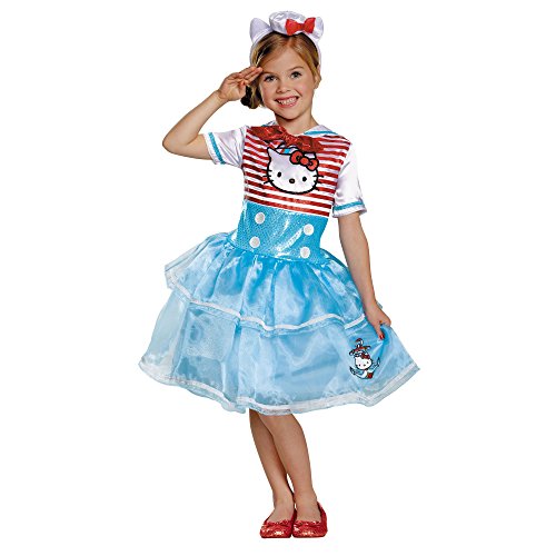 -. Brand : Disguise -. Department : girls -. Feature : Dress comes with character headband with ears / Also includes a mini-hat and bow and a pair of glovettes / High Quality Fabric with lots of glitter and sparkles / Shoes NOT included / Trendy designs focused on quality, with lots of sparkle, details and fun to twirl in tutu skirting. -. ProductGroup : Apparel -. ProductTypeName : ADULT_COSTUME -. Title : Disguise Girls Hello Kitty Sailor Costume Hat & Gloves