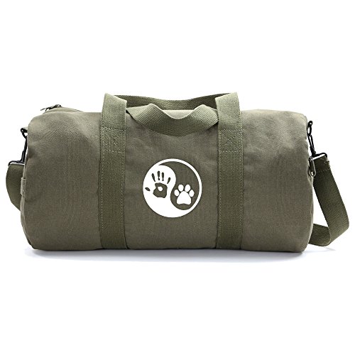 -. Brand : Crazy Baby Clothing -. Department : unisex-adult -. Feature : 2 inch Wide Adjustable Shoulder Strap, Comfortable to Carry, Brass hardware / Enormous main compartment that can fit clothes, water bottles, car keys, wallets, and many more. / Twin carry on handles, 2 zipper pull tabs, Stonewashed 100% cotton canvas / Great For Camping, Traveling, Hunting, Backpacking, going to the gym, and many more. / Dimensions: 19" x 9" x 9" (Medium), 24" x 12" x 12" (Large) -. Label : Crazy Baby Clothing -. Manufacturer : Crazy Baby Clothing -. Model : CBCD-199-P -. MPN : CBCD-199-P -. PackageQuantity : 1 -. PartNumber : CBCD-199-P -. ProductGroup : Apparel -. ProductTypeName : LAGE -. Publisher : Crazy Baby Clothing -. Size : One Size -. Studio : Crazy Baby Clothing -. Title : Ying Yang Human Hand Dog Paw Heavyweight Canvas Duffel Bag