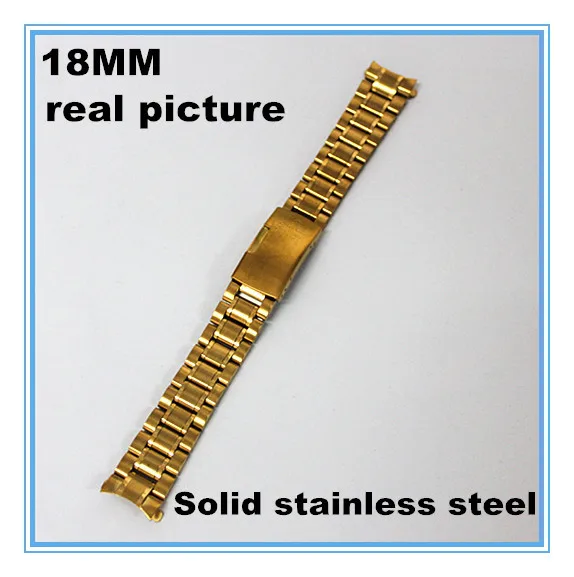 1 개 고품질 18mm 시계 밴드 고체 스테인레스 스틸 시계 끈 골드 컬러-111305