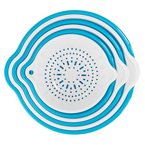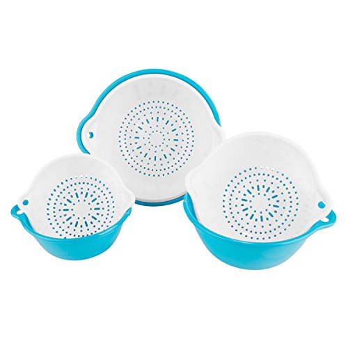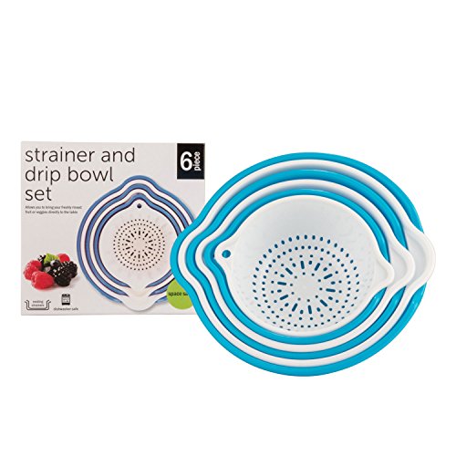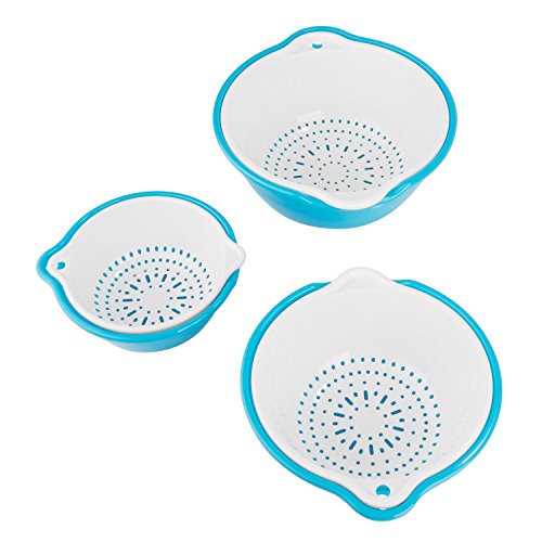 SumacLife 6 Piece Vegetable Fruit Strainer and Drip Bowl Set, Sky Blue
