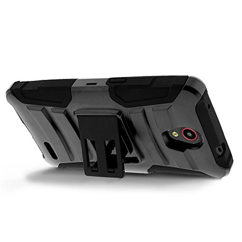 Look great and feel great with this premium protector! This case is designed to offer you offer you quality protection for your expensive device while leaving all the unnecessary bulk behind. A built-in kickstand offers you more convenience when viewing media on your device. Included with this combo set is a belt clip carrying holster designed specifically for use with the Armor case. Combined with the clear screen protector film, this Armor case combo set will offer your device the ultimate protection! Protecting your phone has never been this easier! Design -- The case itself will fit snugly onto your phone, with all features of your phone still accessible, and funactionable. This hybrid Armor case comes in 2 layers; the interior is made up of silicone skin gel, while the exterior is made up of hard polycarbonate (PC) plastic. Built along the hard polycarbonate plastic is the kickstand, which, when not in use, can be pushed back into the case.