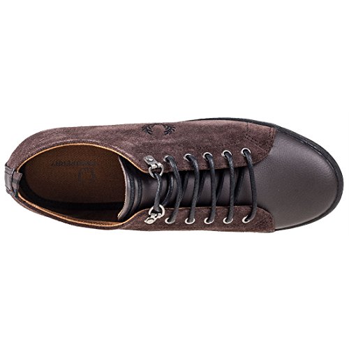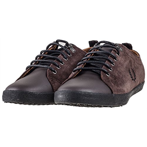 Binding : Apparel Product Description The Mens Kingston Tumbled from Fred Perry combines a Suede Leather upper with a durable Rubber sole. These Trainers feature Lace-up fastening, cushioned insole and Textile lining. Finished with Fred Perry branding, the style B2111-325 comes in a Dark Chocolate colourway. 0