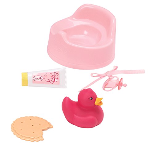 - Feature : Everything a make believe mom needs for her baby doll at mealtime / For a 12" baby doll / Everything little ones need to take care of their baby doll / Playing mommy or daddy will be easy with these accessories / Every Corolle doll is styled in France
