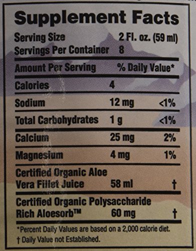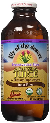 -. Binding : Health and Beauty -. Brand : Lily Of The Desert -. EAN : 0026395830169 -. Feature : 16 Ounces / Serving Size: 2 fl oz (59 mL) / 8 Servings Per Container / Kosher -. Label : Lily of the Desert -. LegalDisclaimer : Actual product packaging and materials may contain more and different information than what is shown on our website. We recommend that you do not rely solely on the information presented and that you always read labels, warnings, and directions before using or consuming a product. Please see our full disclaimer below. -. Manufacturer : Lily of the Desert -. MPN : 0335919 -. NumberOfItems : 1 -. PackageQuantity : 1 -. PartNumber : 0335919 -. ProductGroup : Health and Beauty -. ProductTypeName : HEALTH_PERSONAL_CARE -. Publisher : Lily of the Desert -. Size : 16 FZ -. Studio : Lily of the Desert -. Title : Preservative Free Aloe Vera Juice Inner Fillet 16 Ounces -. UPC : 026395830169