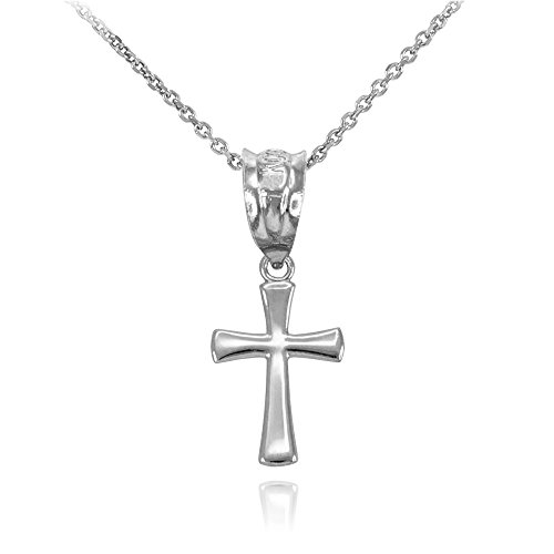 -. Title : Rounded Mini Cross Pendant Necklace in Polished 925 Sterling Silver