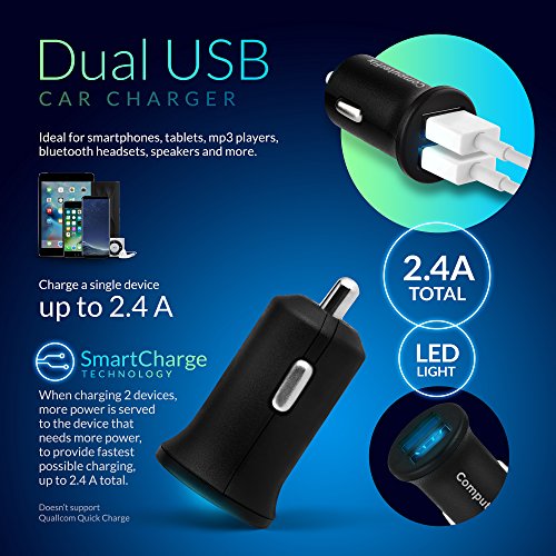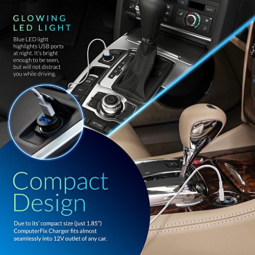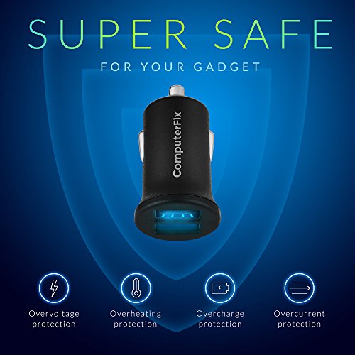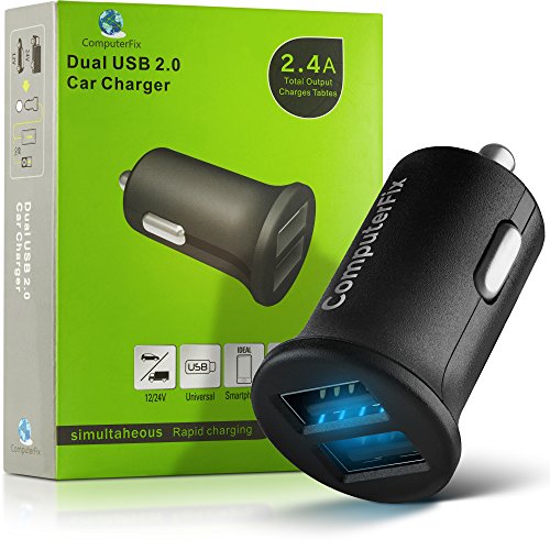 ComputerFix Dual USB Car Charger - Portable & Compact Dual Port 2.4A Output Charger Adapter Will Charge Your iPhone,iPad,Camera,Bluetooth Headphones,MP3,and More! - Perfect for Long Distance Travelers