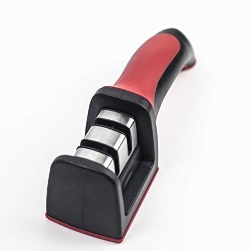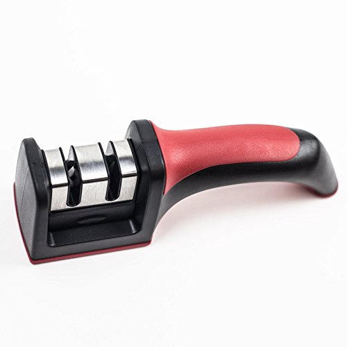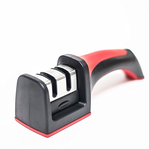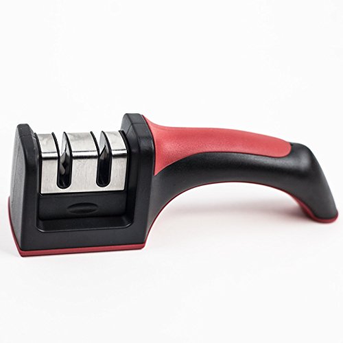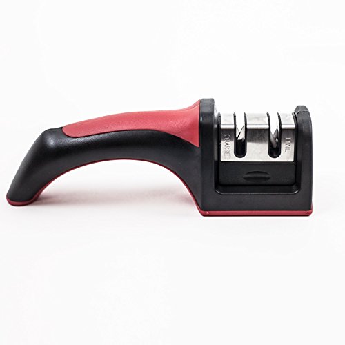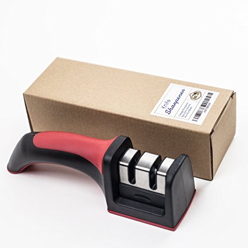 HUJI Professional Kitchen 2 Stage Knife Sharpener with Soft Grip Safety Handle for Knives (1, Two Stage Sharpener)