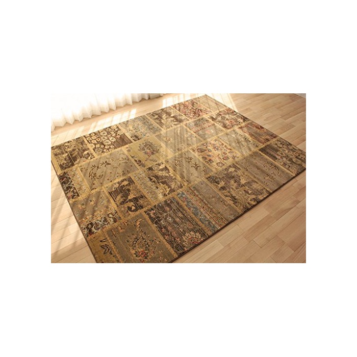 멋쟁이 이 레트로 필링 모던 패치워크 무늬 러그 올드 스타일Ⅱ브라운 약 200×200 cm 약 2 다다미대 윌 톤직 수입 카펫트 핫 카펫트 커버