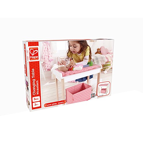 -. Binding : Toy -. Brand : Hape -. Color : Pink -. Department : unisex-child -. EAN : 6943478006461 -. Feature : Your child's dolls will be relieved to be in such good care / Listen to your children role play as the parent with this quality babydoll changing table / Promotes emotional maturity and role playing / Recommended for ages 36 months and up / Non-toxic finishes and child safe materials -. IsAdultProduct : 0 -. IsAutographed : 0 -. IsMemorabilia : 0 -. ItemPartNumber : HAP-E3602 -. Label : Hape -. Manufacturer : Hape -. Model : E3602 -. MPN : HAP-E3602 -. PackageQuantity : 1 -. PartNumber : HAP-E3602 -. ProductGroup : Toy -. ProductTypeName : TOYS_AND_GAMES -. Publisher : Hape -. Size : 14 inches -. Studio : Hape -. Title : Hape - Babydoll Wooden Changing Table -. Warranty : Guaranteed against manufacturer defects