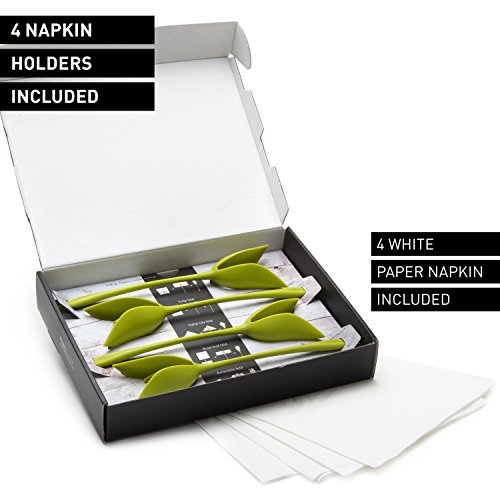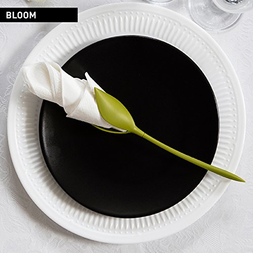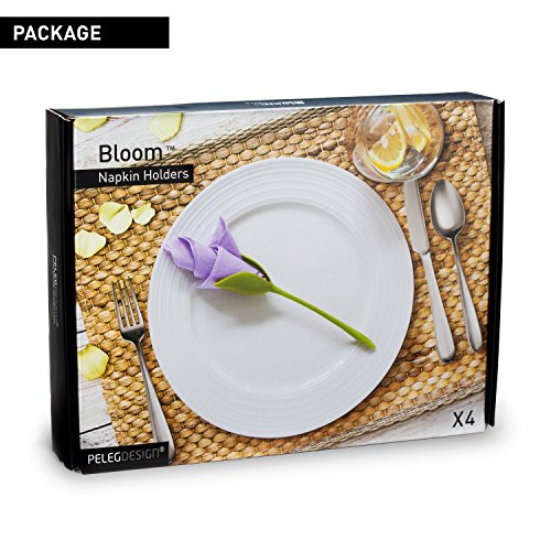 BLOOM – NAPKIN HOLDERS by PELEG DESIGN: Set of 4 Green Stemmed Plastic Twist Flower Buds Serviette Holders Plus White Napkins for Making Original Table Arrangements
