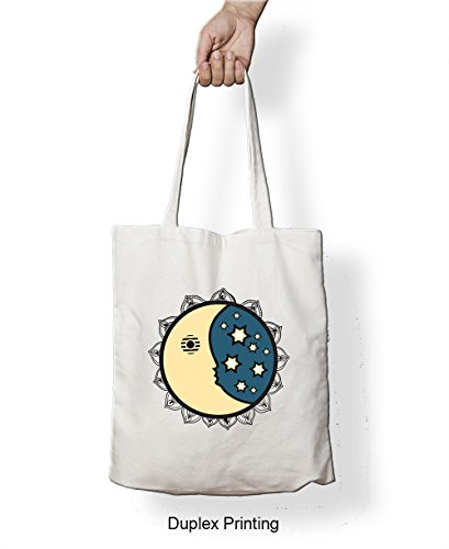 Aimto Heavy Duty Canvas Tote Bag Washable 15"W x 16"H x 4"D Resuable Cotton Canvas Tote Bag,Perfect for Shopping, Laptop, School Books, Moon and Stars