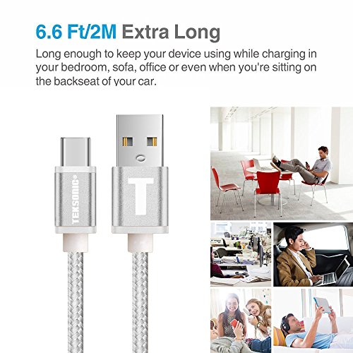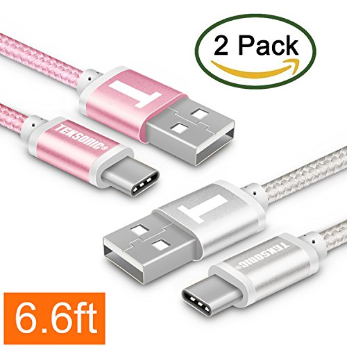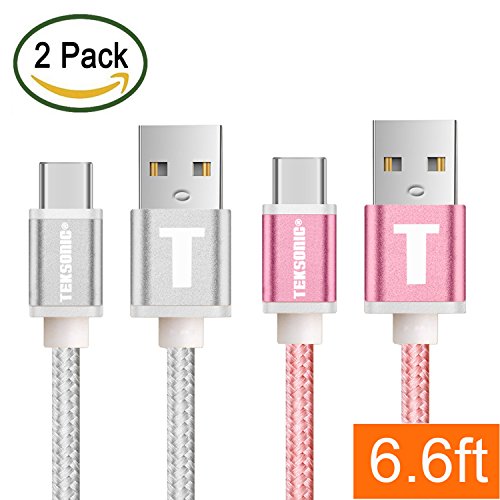 USB Type C, TekSonic [2 Pack] [Rose Gold - Silver] 6.6 Ft/2M Extra Long Braided Cable with Reversible Connector for New Macbook 12 inch, ChromeBook Pixel, Nokia N1 Tablet, Asus Zen AiO, Other Devices