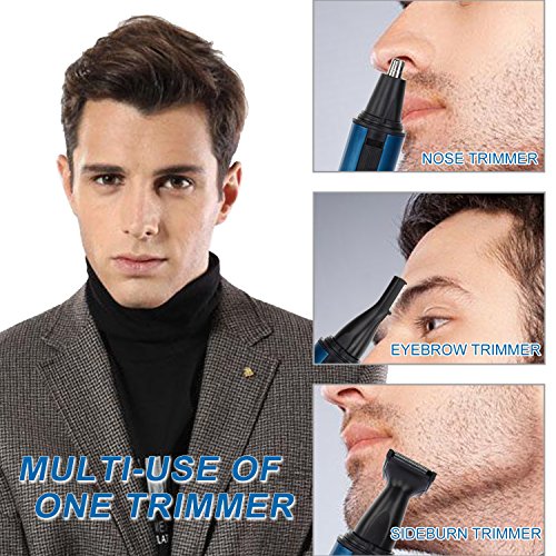 Nose Hair Trimmer - 3 in 1 Waterproof Stainless Steel Blade Ear Hair/Beard/Sideburn/Eyebrow Shaver Grooming Set (Use Battery - Not...