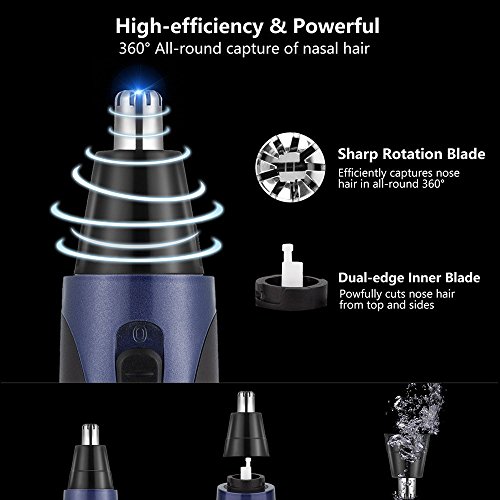 - Powerful & Skin-friendly: With 6500 rpm per minute & stainless-steel blades, Able to cleanly and efficiently cut the nose hair, no stimulation.360°to catch any direction of long nose hair, easy to trim nose hair to avoid pulling tingling.