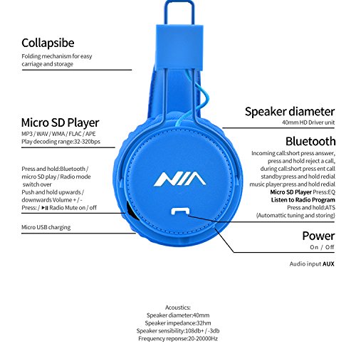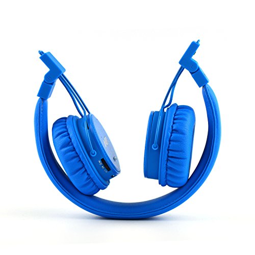 Wireless Headphones,GranVela XP1 Multifunctional Foldable Bluetooth Headset with Microphone,Micro SD Card Player and Built-in FM Radio, Volume limiting for Kids (Blue)