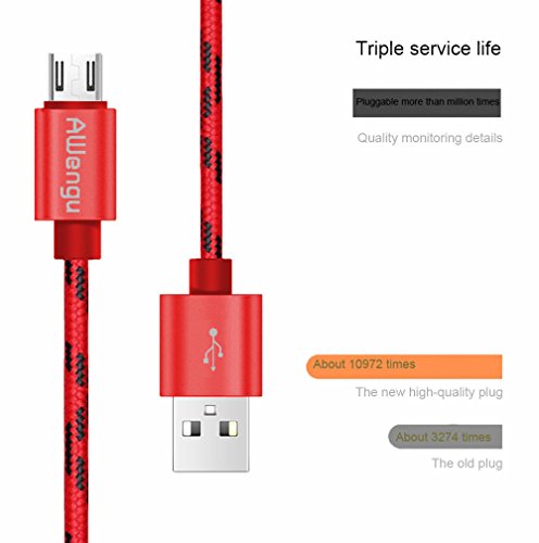 Micro USB Cable Android, Awengu Extra Long 6Ft High Speed Braided 2.0 USB to Micro USB Charging Cable Android Charger Sync Data Cord for Samsung Galaxy S4 S5 S6 Edge S7,Note 3 4 5,Nexus,Red